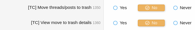 • Logging the movement of threads/posts to the trash by moderators
