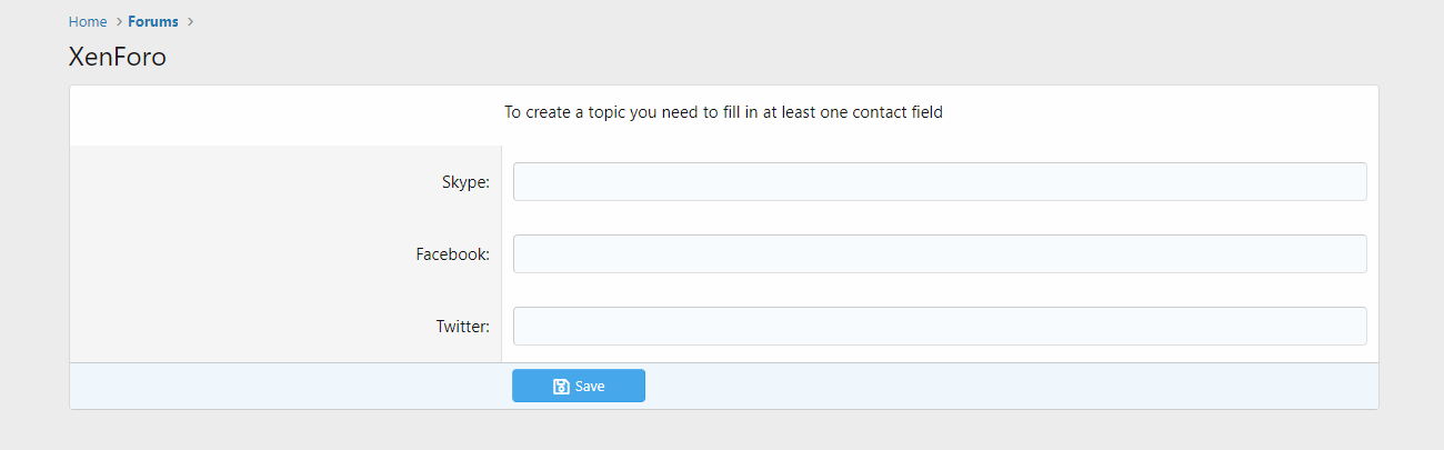 Проверяет заполнение контактных данных перед созданием темы в определенном разделе