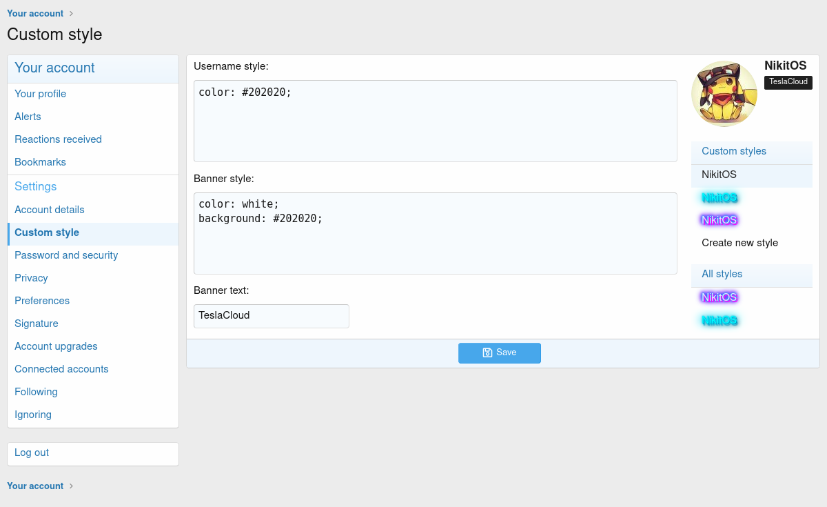 Allows users to purchase custom styling for username and banner.