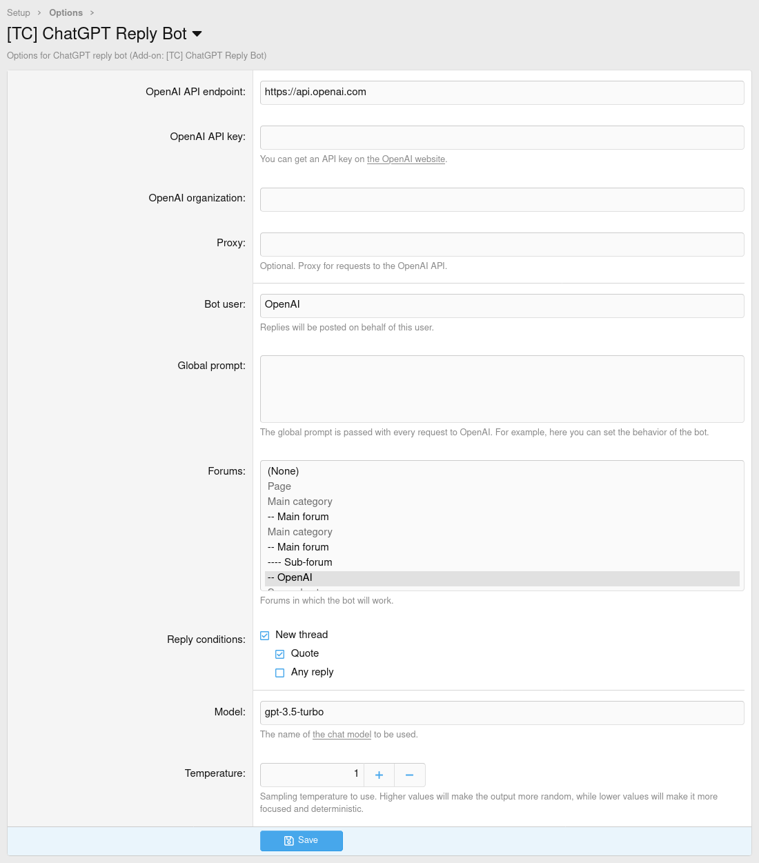 Temperature Sampling temperature to use. Higher values will make the output more random, while lower values will make it more focused and deterministic.